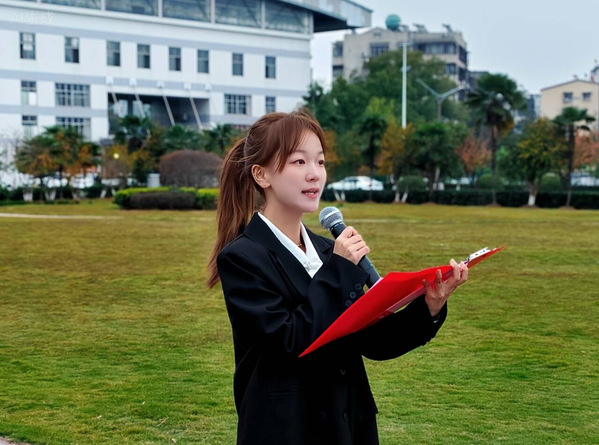 随后,文学院朗诵队带来主题诗朗诵《踔厉奋发新征程,挺膺担当正青春》。他们以饱满的热情与铿锵的语调,展现了青年学子携手奋进、共赴山海的青春豪情,赢得现场师生的热烈掌声。