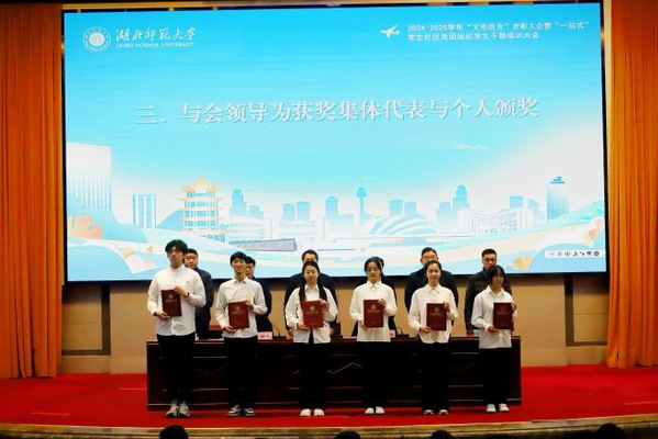 组织部副部长杨娇宣读《关于表彰2024-2025学年“文明宿舍”的决定》和《关于表彰2024-2025学年“一站式”学生社区“优秀学生干部”的决定》。与会领导为获奖集体与个人颁奖,勉励他们珍惜荣誉,再接再厉。