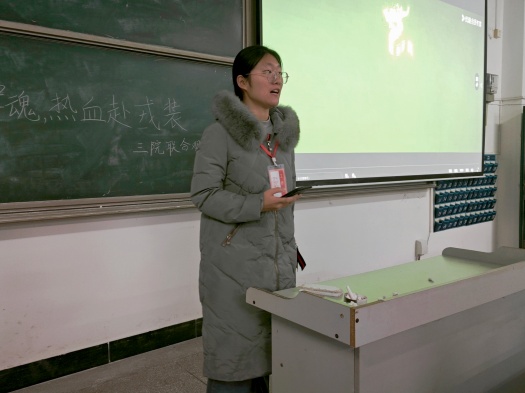 为了帮助同学们坚定理想信念、涵养家国情怀,11月19日晚上7点,文学院、外国语学院和经济管理与法学院三院在科技大楼9206联合举办了“银幕映军魂,热血赴戎装”观影活动。