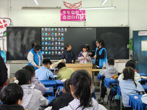 在备受喜爱的“友谊魔法盒”环节,志愿者通过生动有趣的讲解,向学生们传授了四大交往技巧。孩子们全神贯注地聆听,在抢答环节表现得非常踊跃。“我知道!”“选我选我!”的呼喊声此起彼伏,将活动现场变成了一片欢乐的海洋。最令人感动的是,当有同学回答问题时,其他孩子都会安静倾听,展现出良好的素养。