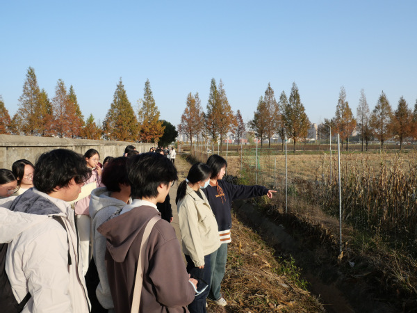随后,学员们前往华中农业大学校内试验田,实地感受科研工作与生产实践的深度融合。田间地头里,科研人员扎根一线、潜心钻研的身影,让全体人员直观体悟到科研工作求真务实的本质与攻坚克难的内核,深刻理解了“把论文写在祖国大地上”的深刻内涵。参观期间,我院就读于华中农业大学一年级的研究生校友王雪,结合自身求学经历,围绕考研备考策略与校园学术生活两大核心议题展开系统分享。