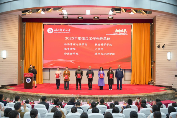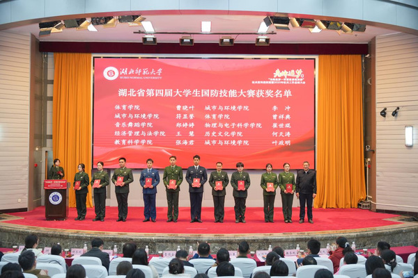 宣讲结束后,学工部、人武部部长杨志丹宣读2025年度最美退役大学生、征兵工作先进个人和先进单位表彰文件。与会领导为受表彰的个人、单位及在湖北省大学生国防竞技技能大赛中获佳绩的同学们颁奖。