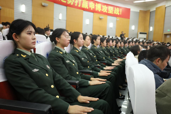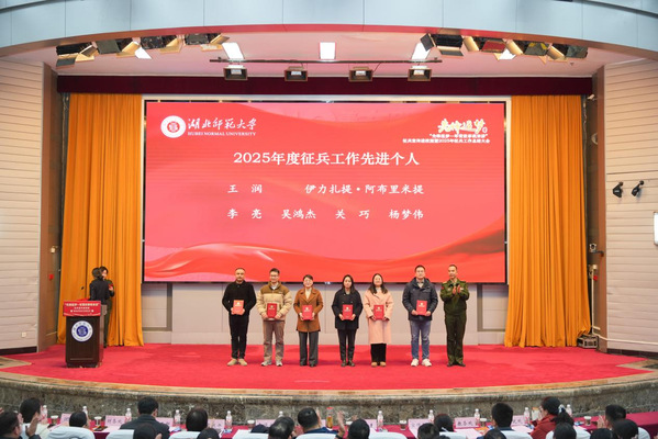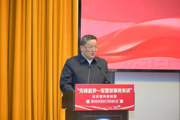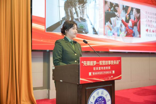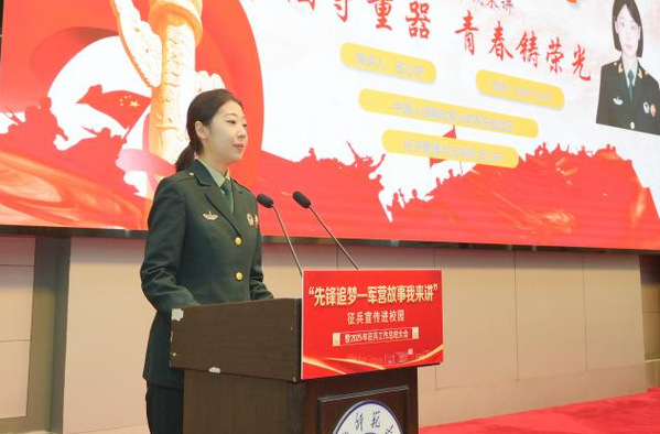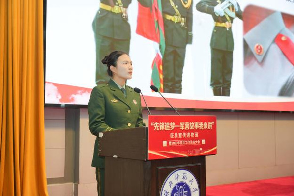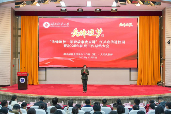 12月5日下午,“先锋追梦——军营故事我来讲”征兵宣传进校园暨2025年征兵工作总结大会在教育大楼报告厅举行。市委常委、市征兵和民兵工作领导小组常务副组长、黄石军分区大校司令员贾宇峰,黄石港区人武部上校部长南小勇,校党委副书记、校长雷儒金出席活动。党政办、宣传部、学工部、人武部、教务处、财务处、招就处、团委等单位负责人,各学院分管学生工作负责人、负责人武工作辅导员及学生代表参加活动。