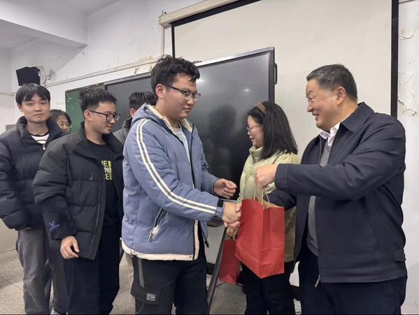 随后,雷儒金还现场为考研的同学们送上考研慰问品,为备考学子送上了慰问和祝福。同学们纷纷表示,将牢记学校领导的关心和嘱托,积极调整好心态全力以赴,不辜负学校和老师们的期望。(通讯员:方金玉)