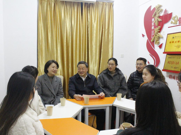 为贯彻落实领导干部深入基层联系学生工作机制,12月7日晚,校党委副书记、校长雷儒金先后来到教育科学学院“师说心语”社区驿站与一站式学生社区总站315室,与对接联络学生共话成长并走访慰问考研学子。教科院班子成员、辅导员和班主任参加活动。