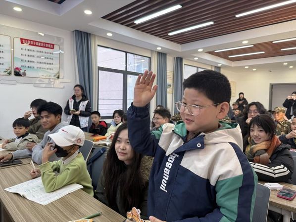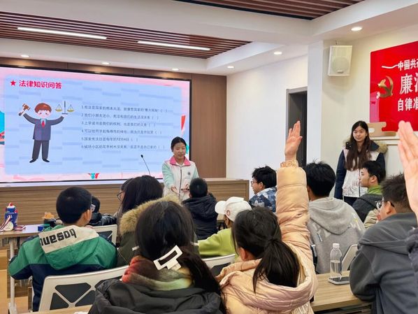 法律知识问答环节将活动氛围推向高潮。“宪法与小朋友息息相关吗?”“可以给同学起侮辱性绰号吗?”面对一道道判断题,孩子们反应敏捷、判断精准,用稚嫩却坚定的声音传递对法律的初步认知;在国家宪法日日期、公民权利义务等选择题作答中,孩子们不仅能准确选出答案,更能结合生活实例阐释理由,展现出将法律知识内化于心的良好成效。活动尾声,志愿者鼓励孩子们将宪法知识融入日常言行,让法治意识成为成长路上的“安全铠甲”,助力自己成长为明理向善、遵纪守法的栋梁之材。