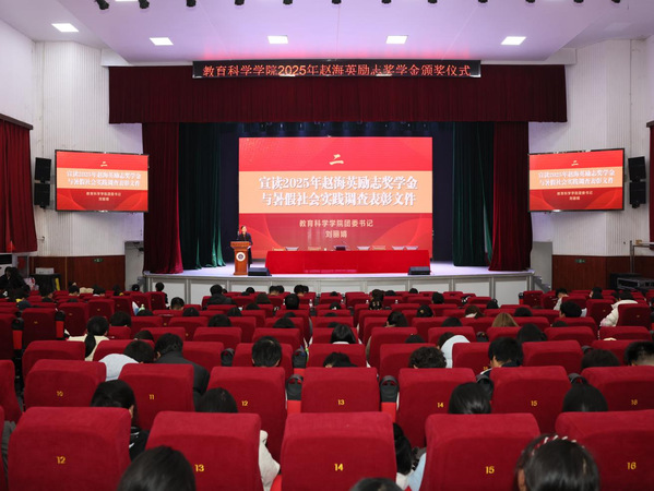 为激励学生勤奋向学、追求卓越,教育科学学院于12月11日下午在湖师大礼堂举行赵海英励志奖学金颁奖仪式。教育科学学院党委副书记刘广兵,副院长张小菊,全体辅导员,大一大二全体学生参与此次会议。