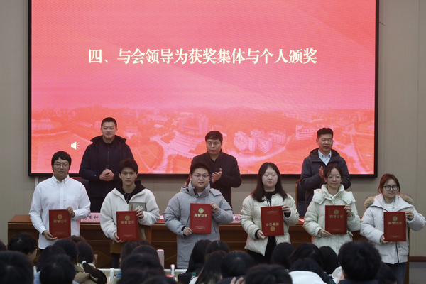 会上,孙玉钟宣读本学期表彰名单,与会领导为获奖集体与个人颁发证书。