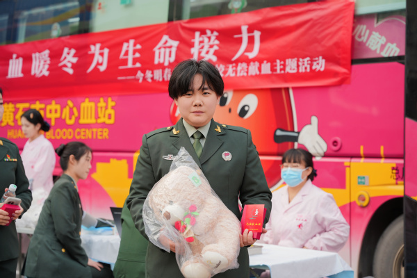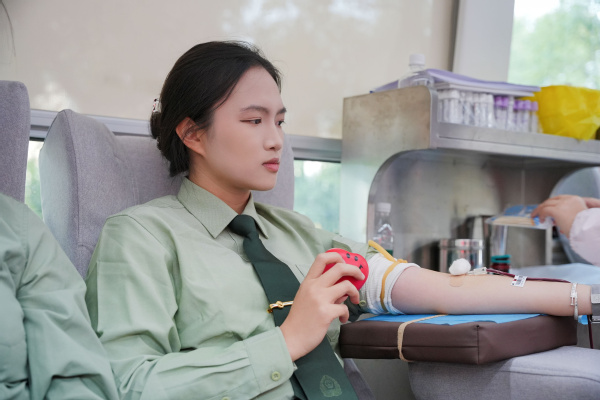国防先锋社成员李可凡已经是第47次献血。他表示:“在人民有需要的时候,我们退伍大学生能够贡献自己的力量,我感到非常光荣。”