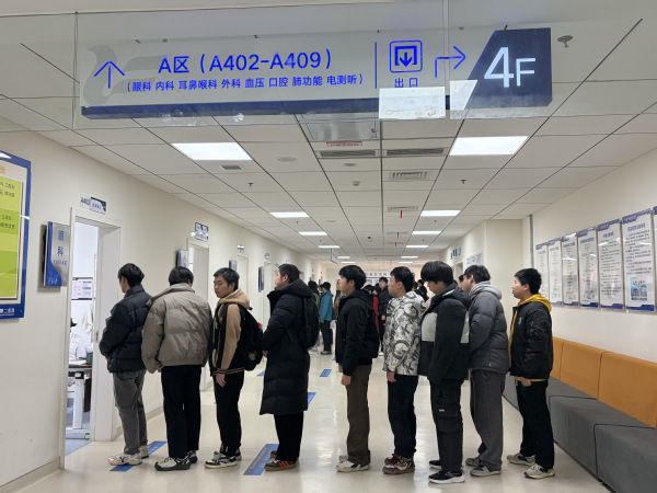 上午8时,体检站内秩序井然。来自我校各学院心怀军旅梦的学子,在工作人员引导下,分批进行内科、外科、视力、听力、心理检测等十余个项目的检查。