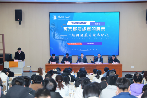 3月12日上午,学校“先进模范进校园”报告会在艺术大楼报告厅举行。全国抗震救灾模范、全国优秀科技工作者、华大集团董事、高级副总裁李斌先生受邀作报告,校党委副书记、校长雷儒金,华大集团中区总经理陈亮,华大集团中区副总经理、武汉华大研究院院长张少桥,生命科学学院院长胡远亮出席活动,武汉华大研究院相关人员、各学院学生代表参加活动。报告会由学工部、人武部部长杨志丹主持。