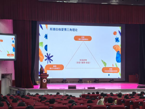 讲座伊始,李欣奕老师结合大学生恋爱实际,深入剖析了当前大学生恋爱现状及常见认知误区。她明确指出,控制不等于爱,依赖不等于爱,并借助斯腾伯格爱情三角理论,着重强调了亲密、激情与承诺在恋爱关系中的关键作用。